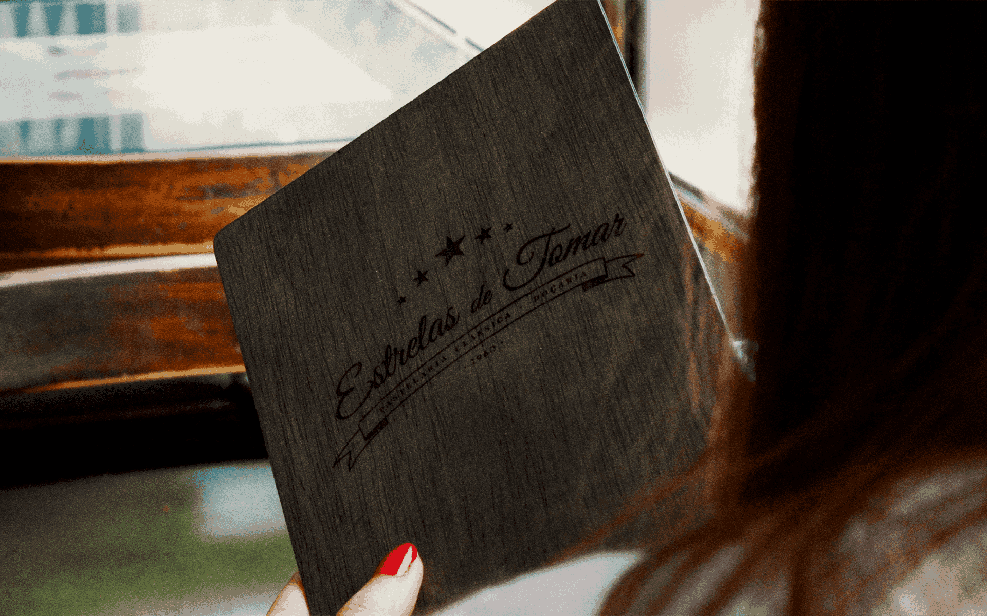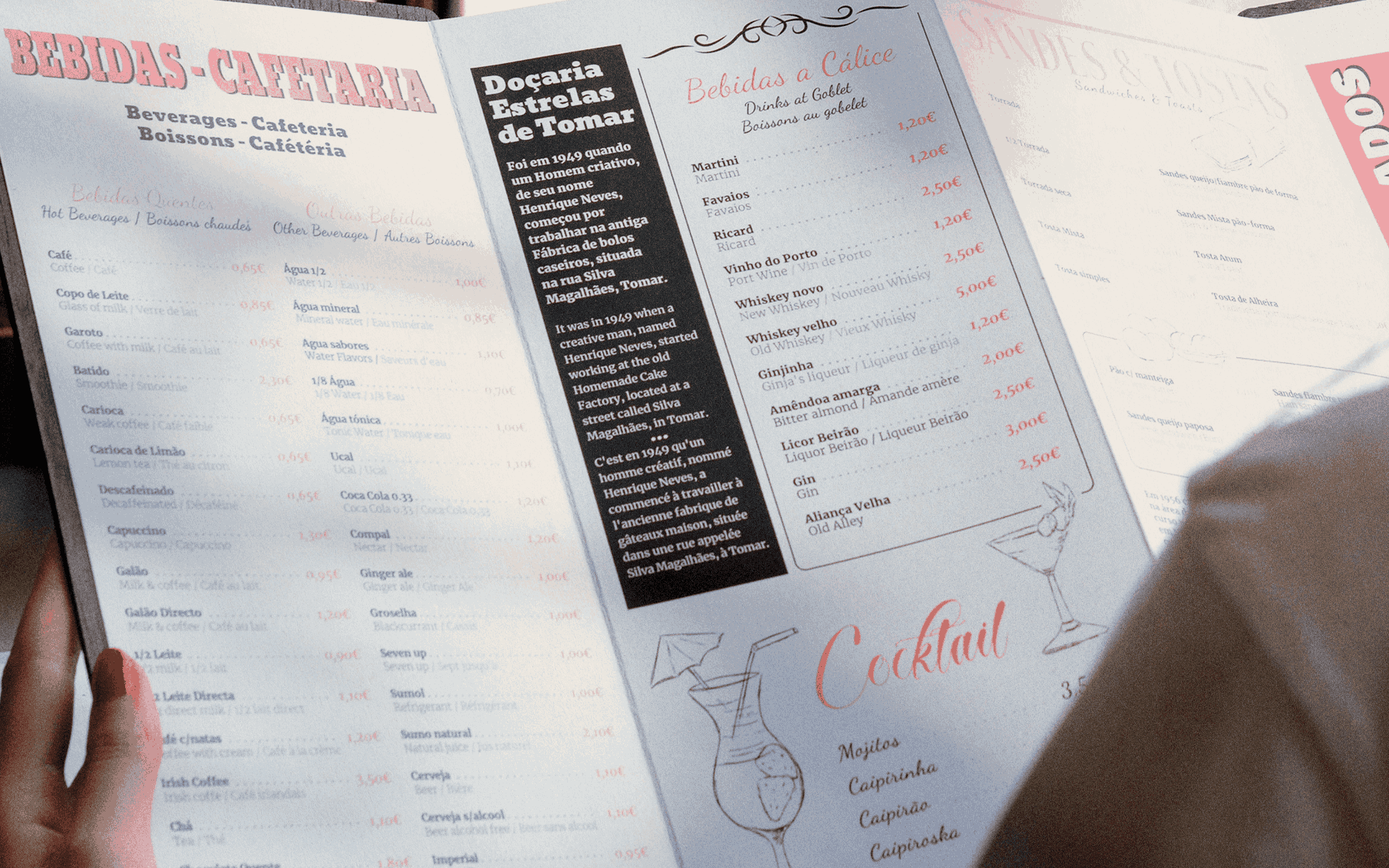 Secção central dedicada à história da Estrelas de Tomar, transformando o menu num veículo narrativo.