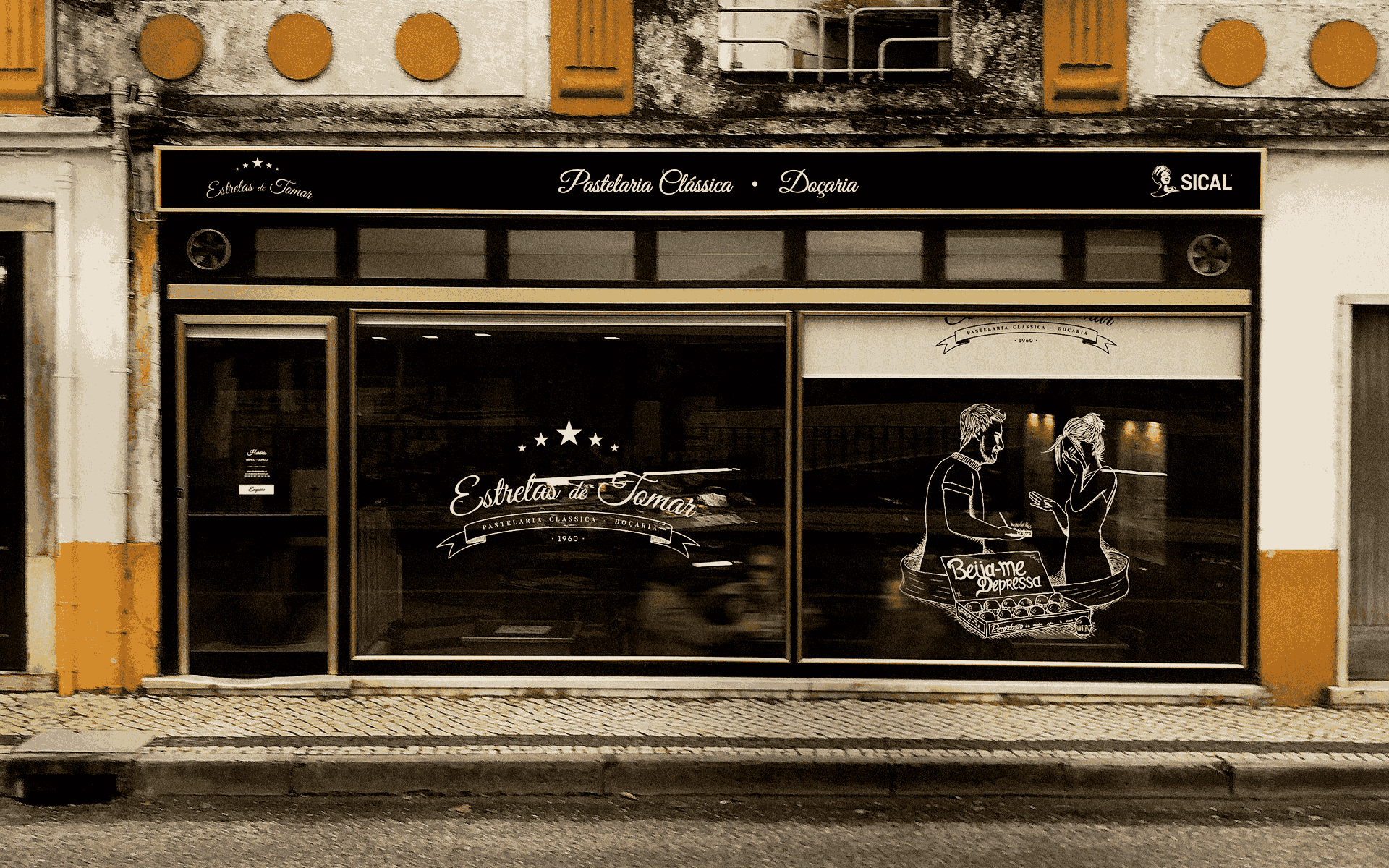 Antes de cores ou rascunhos, mergulhámos nas histórias que fazem bater o coração da Estrelas de Tomar, histórias de pessoas, encontros e lendas, como a do “Beija-me Depressa”: um gesto simples que se transformou numa metáfora doce e eterna. Esta narrativa foi o fio condutor do projeto, inspirando montras, carrinha, materiais gráficos e a presença digital.