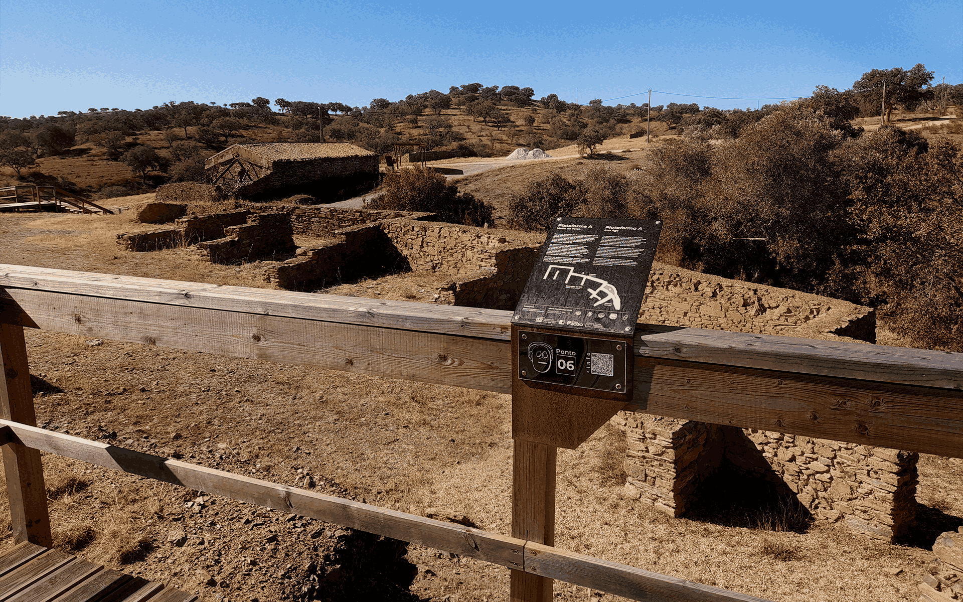 Criámos um sistema completo de placas direcionais e painéis informativos, com atenção à clareza, à durabilidade e à integração no ambiente natural. O conteúdo foi trabalhado para equilibrar rigor arqueológico com linguagem acessível, tornando a visita mais intuitiva e enriquecedora para os diferentes públicos.