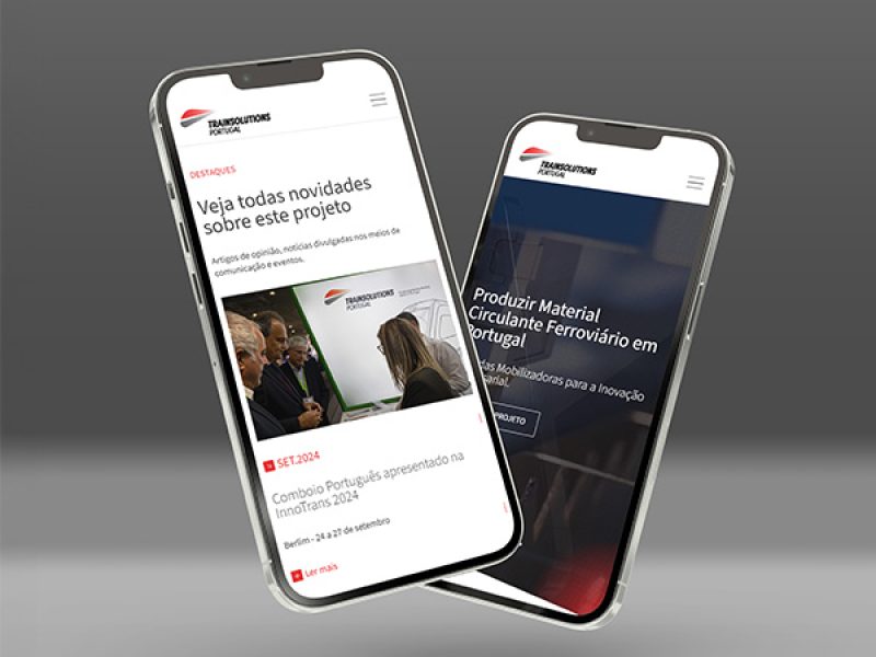 O site trainsolutions.pt foi pensado para ser o ponto de contacto principal com o público. Estruturado de forma clara, com navegação intuitiva, o site apresenta as áreas chave do projeto, o consórcio, os parceiros, notícias e uma galeria multimédia.
